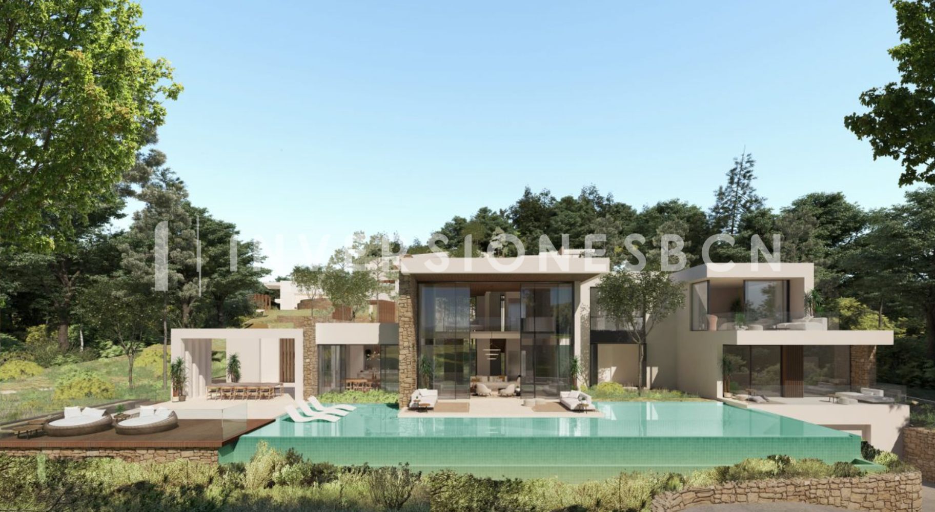 INVERSIONESBCN REAL ESTATE BOUTIQUE, in collaboration with DIO Consulting Investment, presents this promotion of new construction in Ibiza. Ibiza’s distinctive energy and natural beauty are undeniable. This development is unique for its proximity to Ibiza Town and its marinas, while offering tranquillity and privacy in one of the most stunning and sought-after areas of the island. Not only is this development exclusive in the sense that it borders and enjoys views of the Roca Llisa golf course, but it also boasts exceptional access and security, and provides all the exclusive amenities on a top-of-the-range lot. In all of Ibiza you will not find a more authentic style, an exceptionally designed development, which respects and integrates with its natural surroundings and offers enchanting views. The Corallisa urbanization offers premium security systems throughout the complex, ensuring optimal safety and security in the heart of unspoiled nature. Each property sits on a landscaped plot of at least 1,500 m2 with complete privacy from neighbouring residences. The density of dwellings has been kept to a minimum so that each villa magically coexists with its privileged wooded environment. It will bring the summer atmosphere into your life with the light-filled interiors and imposing architecture, which will make you imagine that you are living in the middle of the blue and emerald environment. Corallisa’s domain embraces the innocence and diversity that comprises Ibiza’s unique style by incorporating the textures and shapes that shape the island’s indigenous aesthetic. Wooded infinity pools, local stone, exceptional natural light diffusion, optimal energy efficiency and seamless integration of indoor and outdoor space, are all standard features of the innovative architecture of these luxury villas, where supreme comfort meets eclectic design. Each villa enjoys an elevated position offering stunning panoramic views of both the pristine golf vegetation and pine forests. Privacy is not compromised, as each villa boasts complete and unwavering privacy. The construction specifications are of an exemplary high standard, with selected elements, exceptional materials for floors, windows and doors, and state-of-the-art appliances for kitchens and bathrooms, all underlining the exceptional design and architectural features. Despite the exceptionally high standards and quality of specifications, each villa can be tailored to the owner’s personal aesthetic measure or wishes. The design allows for customization of the kitchen and modifications can be integrated to suit individual requirements. Environmental standards are also a priority, as it incorporates energy-efficient facilities such as year-round high-performance aerothermal systems, indoor air conditioning and air quality control. The villas have been designed for optimal use of natural resources in water consumption, including rainwater harvesting, cisterns and filters. Type A Five-bedroom villa with spectacular golf views on two floors and basement. Main access through the upper level, which features a master suite and two bedrooms. The lower level features a spacious living room that extends out to the infinity pool. On the same floor there is a separate guest area with two bedrooms. Type B Single-level villa with four bedrooms, open views and great privacy. Luxury on one floor with clear separation between the leisure area and the sleeping area. The living room, open kitchen, and outdoor areas are perfect for gatherings. Spacious basement and garage with space for up to four cars. Type C Four bedroom villa built on one level with large basement and garage. The layout offers three independent spaces, all of them with access to the swimming pool. The day, night and leisure areas are ideally designed to enjoy the celebration of events, friends and family gatherings. Type D Four-bedroom villa. The lower level is similar to the Type C villa, while the upper level features a spectacular master suite. The room has a double-height ceiling and 7m high glazing that seamlessly connects the indoor and outdoor areas. Contact us to learn more and arrange a visit. Property Code IBCN00502