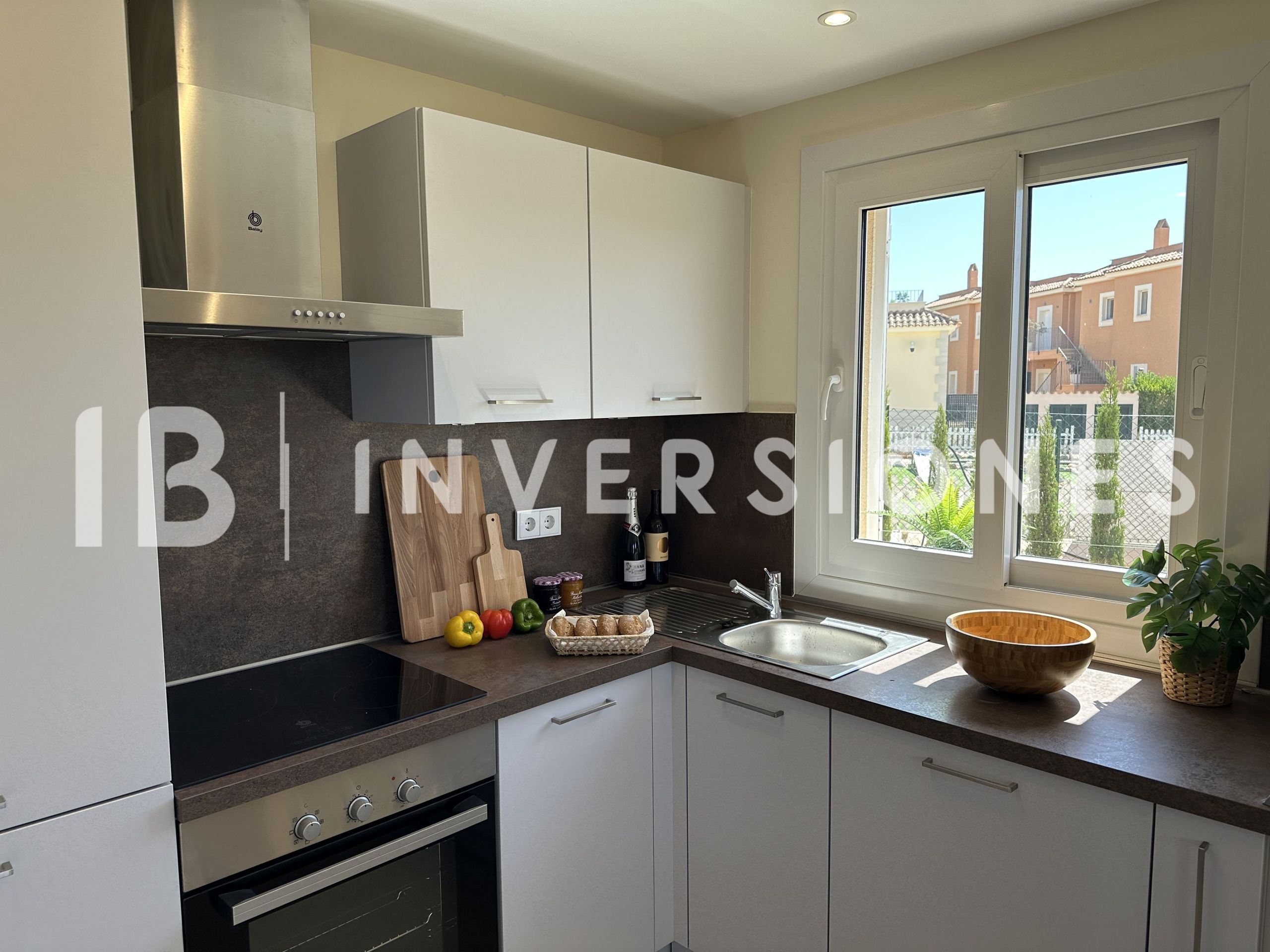 It is a residential area consisting of 12 independent two-storey houses with a fenced garden, two terraces and a roof terrace with access. In the communal area of the complex we can find: two swimming pools, two tennis courts, mini golf course, green areas, a bicycle centre, a conference room, and a restaurant.
